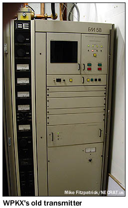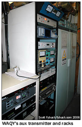 With the analog transmitter now silent and gone (and the DTV transmitter having moved into its old space), you'd think this would be a pretty big empty building, and you'd be partially right - except for some storage, there's been no real use made of most of the old office or control-room space here in over a decade. But even before WWLP's studios and offices moved away, there were other tenants here as well: yet another room added on to the building upstairs houses a variety of transmitters for various two-way radio operators and a handful of other broadcasters. Saga's WAQY (102.1) was one of the first tenants up here, and its transmitters have long occupied the upstairs room. For a time, it was home to some lower-powered TV as well: W69AQ (Channel 69) operated here in the 1970s and 1980s to bring some additional sports programming (Red Sox and Bruins) into the market as a translator first of WRLP (Channel 32 in Greenfield, a former semi-satellite of WWLP) and then of Boston's WSBK after the demise of WRLP. Later on, WHTX-LP (Channel 43) broadcast from here as a Univision relay of Hartford's WUVN (Channel 18); it's now silent as well.