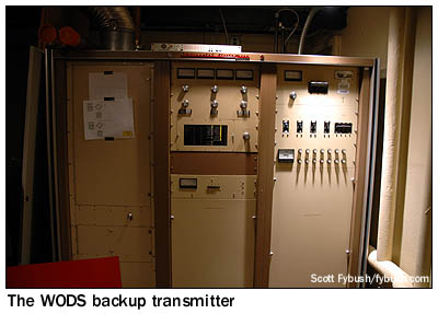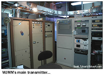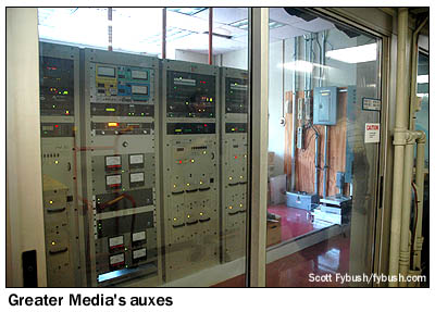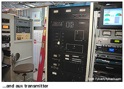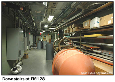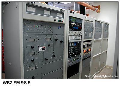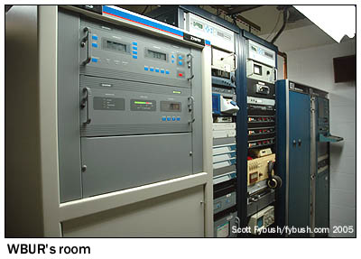 The occupants of those rooms have come and gone over the years, but one has remained constant: what was WHDH-FM and later WCOZ eventually became WZOU and then WJMN, and it's in the first room on the right as you walk in from the main entrance. Now owned by Clear Channel, 94.5 now has a sister station in its room, too: WXKS-FM (107.9) has its main transmitter at the Prudential Tower in the city, but there's an auxiliary transmitter here that "Kiss 108" can use if the Pru site is down.