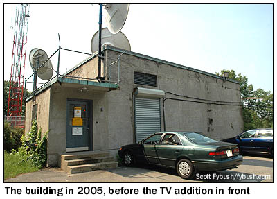 In the years since we last featured this site, the "FM 128" moniker has become increasingly inaccurate, which may explain why it's known lately as the "American Tower" or "Chestnut Street," too. That's because recent years have found several FMs moving away from here, and TV coming back after a decades-long absence. That new structure added to the front of the old WHDH-TV building is home to one of the new DTV signals at the site, WMFP (RF 18/virtual 62), which moved its DTV signal here after operating in analog from the One Beacon Street skyscraper in downtown Boston.