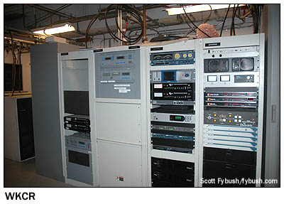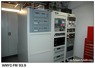 Before we head inside from the roof, one more note about the level of detail that went into the design and operation of this facility: to comply with regulatory requirements that RF safety information be provided to anyone going out on the roof, site manager John Lyons installed that nifty boxes shown above at right, delivering recorded information about which areas are safe and which ones require additional protection. They don't use just any random voice, either - as befits someone with deep New York radio connections, John got former WLTW (106.7) afternoon legend Valerie Smaldone to do the VO for that little project!