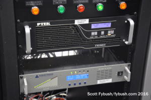 The radio side of the building here has an older RCA that serves as a WVNO aux, as well as the transmitter for WOHZ (now on RF channel 41), a rack for American Family Association’s WAUI (88.3 Shelby), which leases tower space, and a newer Nautel that is WVNO’s main analog/HD rig.