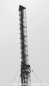 By December 1982, construction was almost complete and the nine stations were getting ready to move out of downtown just in time to escape the multipath from the new taller buildings that were going up around One Shell, when disaster struck. As the master FM antenna was being lifted into place, a bolt failed, the antenna hit a guy wire, and within 17 seconds the entire tower had collapsed. Two workers on the tower and three workers who were riding the antenna were killed. There was video of the accident, which prompted lawsuits, new safety regulations and much study by structural engineers in the decades that followed.