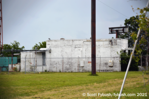So about that Jefferson Avenue site and WGH: it still exists, and is still used by a station called WGH – but it took a while for things to circle around. WGH started out in Norfolk as WPAB in 1927, tried to relocate to Charlottesville and then Salisbury, Maryland, and finally ended up moving its license to Newport News in 1928, operating briefly as WNEW and then taking the “World’s Greatest Harbor” calls. A 250-watt station on 1310, WGH moved to a self-supporting tower here at the Jefferson Avenue location in the mid-1930s, building what was then a pretty splendid little Art Deco transmitter building that survives now with the windows bricked up and the red brick painted over.