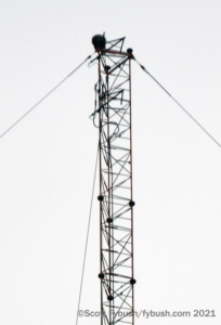 On the AM side, 1490 went through several iterations of format and owner, spending some time as part of the Redskins-owned Red Zebra sports network out of Washington. Today, WXTG carries a classic R&B format as “The Groove,” augmented by a translator on 101.9 mounted at the top of this tower. (There’s another leased tower site right next to 1490/101.9, but nothing broadcast there.)
