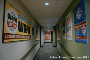 The main studio hallway runs past two rooms on the window side of the building, a production room and an office space for WRFA’s community programmers.