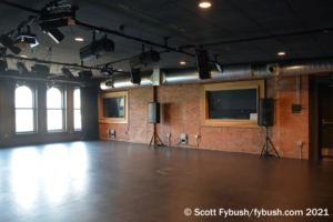 As part of the larger Reg Lenna family, WRFA also has access to a large room upstairs that’s used for various live gatherings and performances, as well as political debates. There’s a control room for audio and video for that room that can also feed audio back downstairs for WRFA broadcasts.