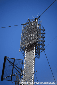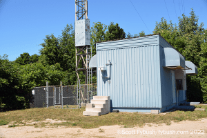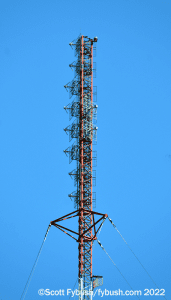 It’s not easy to get all the way back to Bell’s CKLH site off King Road at the edge of the escarpment, so we get our long shot from a nearby dog park with a terrific view over Hamilton and the end of the lake. For such a large signal, CKLH (which is “Move 102.9” these days, with hot AC) was a relatively late arrival; it took 20 years of applications before venerable Hamilton station CKOC (1150) was finally granted the FM frequency and put it on the air in 1986.