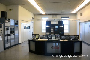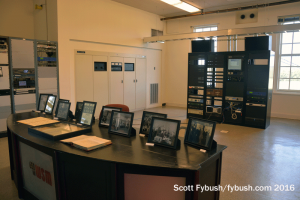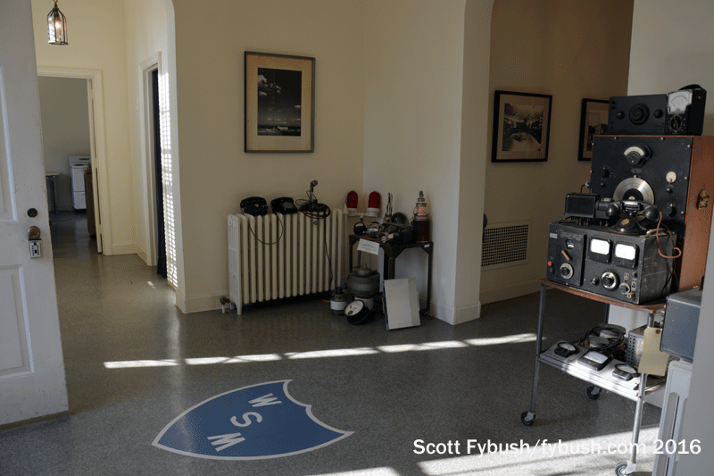 There’s more history on display all over this room, including old tower beacons and tunin coils on one side and consoles on the other – and in the middle, the desk that served as the WSM air studio for much of 2010 while the Opryland studio was being rebuilt!