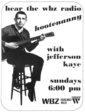 After serving in the Air Force during the Korean War, Kaye began his radio career in Providence in the late 1950s, where Krimski became “Jeff Krimm,” then “JK the DJ” on WHIM (1110) and WRIB (1220). By 1961, his rich pipes had caught the attention of Boston”s WBZ (1030), which brought him on board as part of the Westinghouse station”s transition from the middle-of-the-road “Live Five” to a more aggressive top-40 format. Kaye quickly made a mark for himself on WBZ, moving up from overnights to weekday afternoons. And he distinguished himself as well as the host of Sunday night”s “Hootenanny,” the show that brought folk music to a large and passionate audience around New England and helped to make performers like Joan Baez into household names.