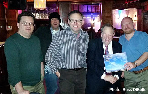 *The new Tower Site Calendar is here! And not only is it now shipping from the Fybush.com Store, it was the star of the show last week in New York City, where yours truly (at the right) was happy to get together with a whole bunch of radio folks to launch this year’s edition in the world’s media capital.