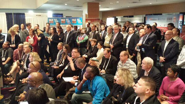 This was the show we’ll long remember as the end of the Dickey era at Cumulus, with the news of Lew and John Dickey’s ouster from that troubled radio company landing with a thud just hours before the show’s opening. It was the show that raised still more questions (but offered few answers) about the battle between Nielsen and Voltair. (All those folks in the photo at right were waiting for Nielsen to make its PPM presentation – “standing room only” didn’t even begin to describe it.) For AM owners waiting for some help from the FCC, it was the “keep waiting a little longer” show.