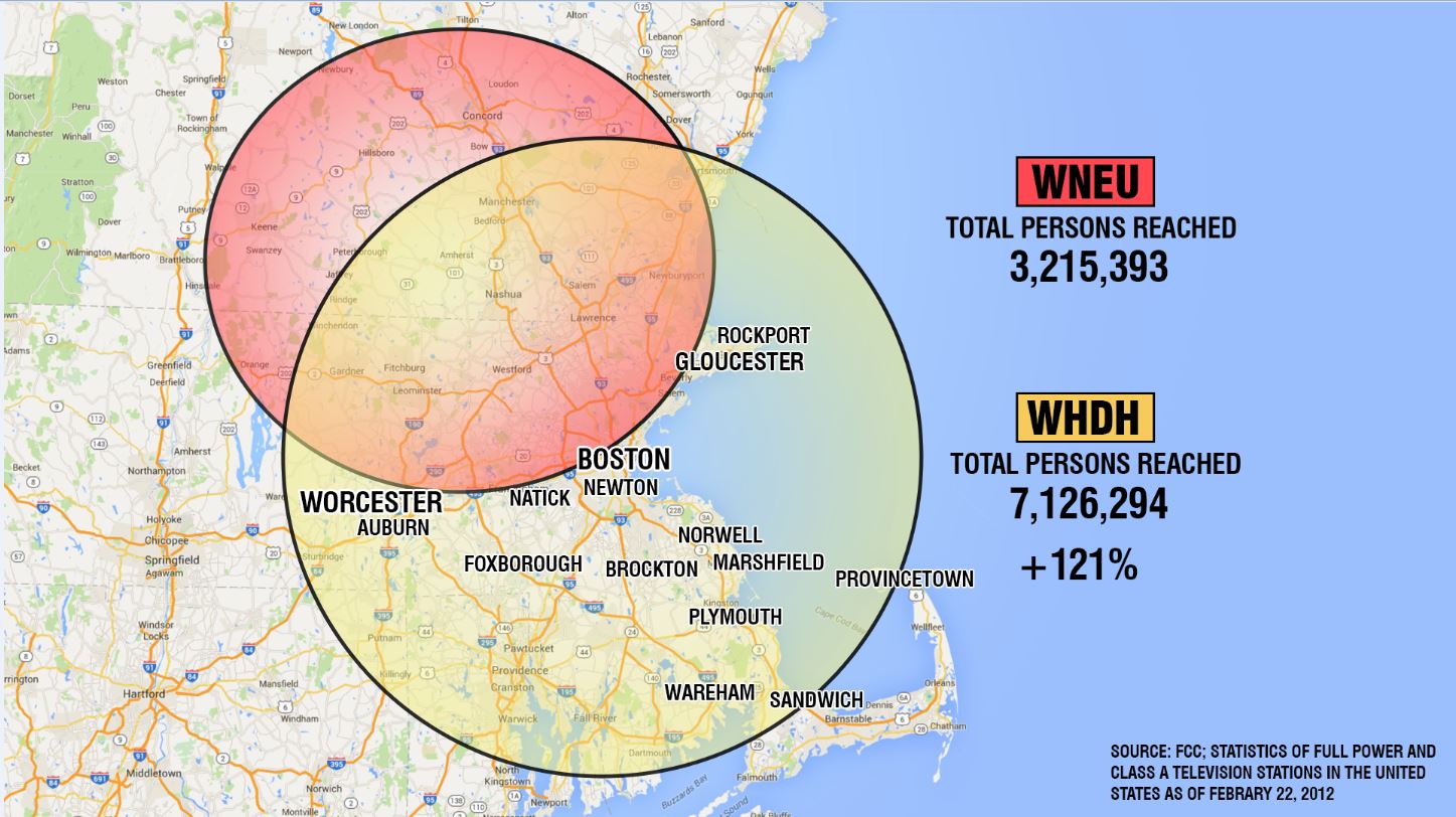 And that, the suit argues, violates a promise that Comcast made to the FCC when it was allowed to buy NBC five years ago. Ansin says Comcast assured the government that it wouldn’t do anything to reduce NBC’s over-the-air reach in order to push viewers to its cable business. He points to the areas where WNEU doesn’t reach – lower-income areas like Roxbury and Dorchester – as particular points of concern about the move. Comcast wasted no time firing back, calling the lawsuit “meritless” and noting that its affiliation contract with WHDH was set to expire in December and included a cancellation clause. *There’s a new AM signal on the air in MASSACHUSETTS‘s Merrimack Valley, as Costa-Eagle Communications relocated WMVX (1570) from Beverly to Methuen on Wednesday afternoon. The new WMVX is a 31 kW day/102-watt night non-directional signal that shares the tower of sister station WNNW (800 Lawrence), making it the company’s fourth AM in the Merrimack Valley. At least for now, it continues to carry Portuguese-language programming from Nossa Radio. *RHODE ISLAND owner Chris DiPaola has expanded his station empire with the recent launch of WWRI-LP (95.1 Coventry).