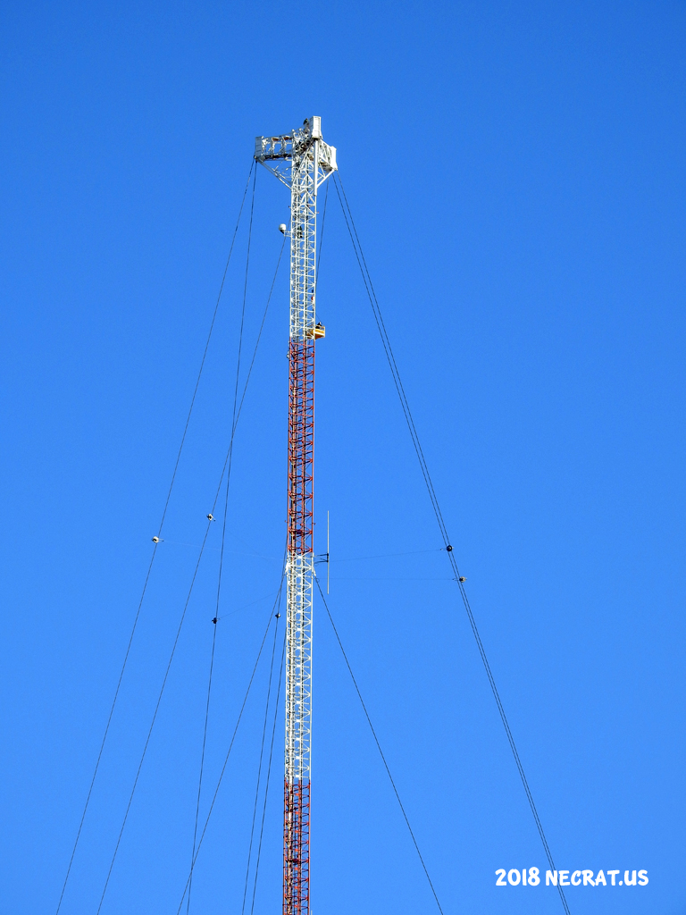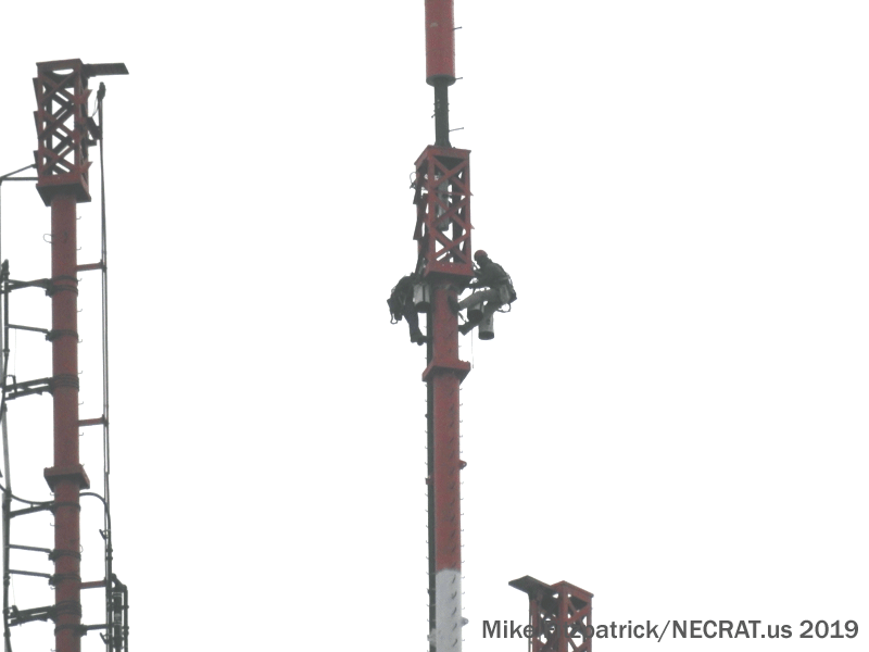 Still later on, there will be more motion: Telemundo’s WNEU will move from New Hampshire down to the Cedar Street tower, while WGBH-TV, relocating from UHF to VHF on RF channel 5, will get a shiny new antenna on the Cabot Street tower. In the meantime, though, those who know will be forgiven if they keep looking up at the Needham skyline and thinking something looks a little off for now. (And yes, those three arms of the candelabra will remain, without their antennas, even after the new antenna rises from the center of the tower.)