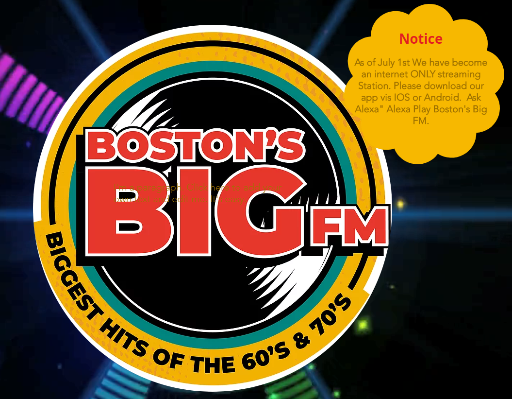 *A quiet format change north of Boston has removed the “Big 105.3” oldies format from WUBG (1570 Methuen) and its Malden-based FM translator. Those Costa Eagle-owned signals have flipped to EMF’s K-Love contemporary Christian programming, while “Big” lives on in streaming-only format as “Boston’s Big FM.”