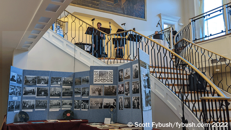 On the air, it started Sunday afternoon at 1 with two talk shows featuring current WGY host Doug “VB” Goudie and former host Joe Gallagher. While the shows were going on from the current iHeart studios in the suburbs, a crowd was gathering at the historic Kenmore Ballroom in downtown Albany, site of early WGY remotes. After looking at historical exhibits, they (and we!) enjoyed a talk on the station’s early history, music from 1922 performed by the Musicians of Ma’alwyck – and then a most entertaining comedy-drama restaging of the events that might have surrounded WGY’s inaugural radio drama from back then, “The Wolf.”