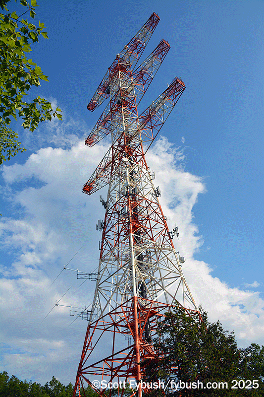 It was great to get inside the gates at Alpine again after all these years, and it’s impressive to see how much is still going on at this most historic site. It’s still the main transmitter location for WFDU (89.1 Teaneck) and the backup site for several New York City stations, including WPLJ, WPAT-FM and WSKQ. There’s lots of two-way radio and cellular on the old tower, and there’s some shortwave, of all things, as well, being used for high-speed stock trading, we think.
