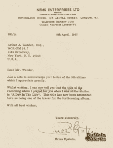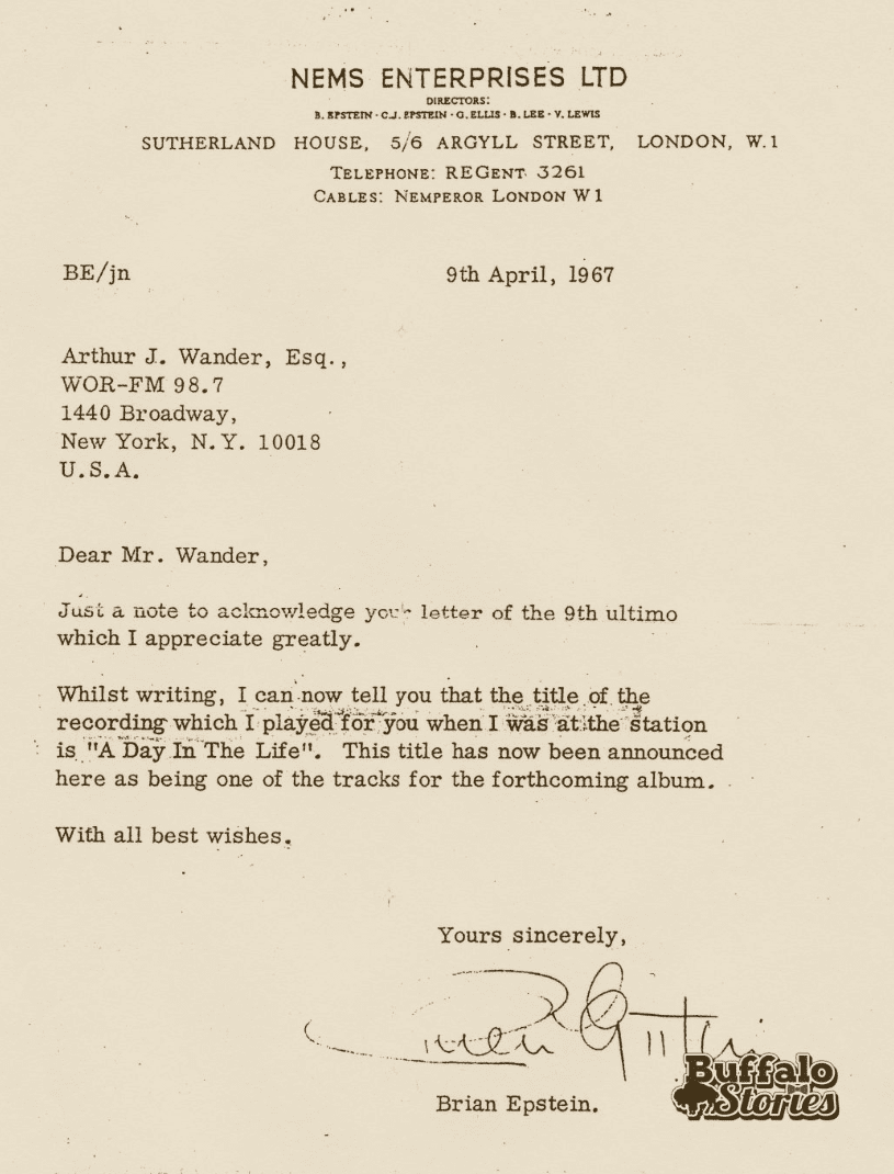 While at WOR-FM, Wander got to hear a pre-release version of “A Day in the Life” before the track even had a publicly-announced name, leading him to write Epstein to find out just what that was that he’d heard.