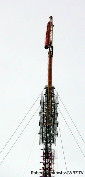 With any luck, the upper antenna will be rebuilt and returned to the Needham site by early June…and it’s a good bet that larger TV broadcasters will be thinking a little harder about the need for better backup facilities for their DTV transmissions.