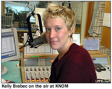 Kelly Brabec in the KNOM studios - she's one of the fulltimers