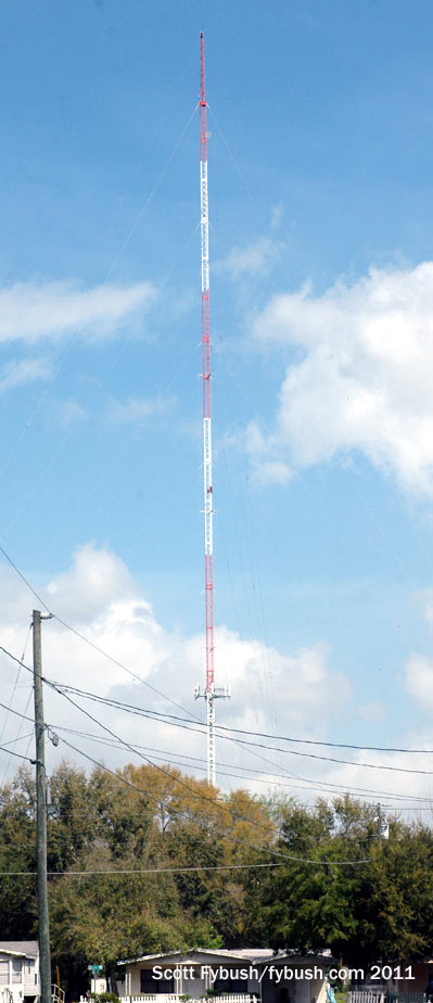 Licensed to Orlovista, WEUS (810) signed on in 2006 with a potent 10 kW signal by day and 400 watts at night from this four-tower array. It was doing talk when we were there in 2011, trying to get attention with a lineup that included several veterans of the Orlando “hot talk” format on bigger WTKS-FM (104.1), but in 2012 it flipped to sports under new calls WRSO.