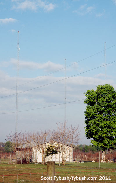 For a time in the 1980s, 950 even simulcast with top-40 “BJ-105,” which had taken its calls from Rounsaville’s wife Betty Jane. 950 later ended up with Infinity and then briefly with Cox as WZKD before going to Salem. (And while we didn’t get to see them, the old WLOF studios apparently still exist alongside the five-tower array; check out photos over at CFLRadio.net, which is a wealth of great information about radio in this area.)