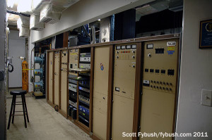 There’s a separate transmitter room adjacent to the WXXL room, and it’s home to several other signals. What was still WLOQ (103.1 Windermere) was licensed at this site in 2009 as a C2 signal – but when we visited early in 2011, its BE transmitter at this site was silent and it was instead running from its old site (now an aux) closer to the middle of town. (We’ll catch up with that site in a bit!)