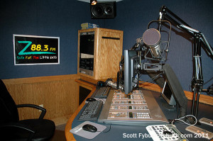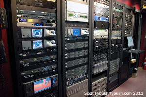 The Z88.3 studios are in an office park in Altamonte Springs, just west of I-4, and they’re a showplace: a big air studio looks out into the lobby, with two production studios immediately adjacent – and just across the hall is a glassed-in rack room showing off Randy’s hard work on establishing a bulletproof network linking the studios to the multiple transmitter sites for WPOZ itself and its simulcast stations around central Florida, including the one we showed you in our Flagler County visit. (Not long after we visited, Z lit up several powerful translators relaying its new HD-2 and HD-3 formats, Christian urban contemporary “Hot 95.9” and Christian rock “106.3 the Rock.”)