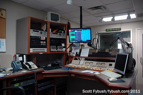From Micanopy, I-75 slashes northwest, skirting the west side of Gainesville – and our next stop is up on the city’s northwest corner, where Entercom’s studios for WSKY-FM and sister AC station WKTK (98.5 Crystal River) sit in a little office park on NW 43rd Street. This is a compact, simple layout: mirror-image studios for both stations sit near the front of the facility, facing the lobby and surrounded by offices and production rooms, with the rack room tucked in just behind the studios at the back of the building. (WKTK’s 100 kW transmitter facility is rather remote, out to the west of Ocala almost to the Gulf coast.)