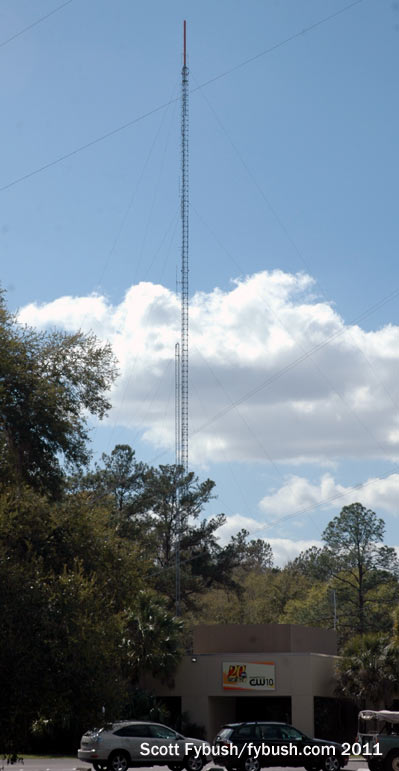 WCJB’s transmitter (now on RF 16) is south of Gainesville and west of I-75; WNBW and WGFL (now on RF 28) are out by Newberry, west of Gainesville. We didn’t get to those, but we sure did get to see the tower for WUFT-TV and sister stations WUFT-FM (89.1) and WRUF-FM (103.7), which have their tower just west of the WCJB studio.