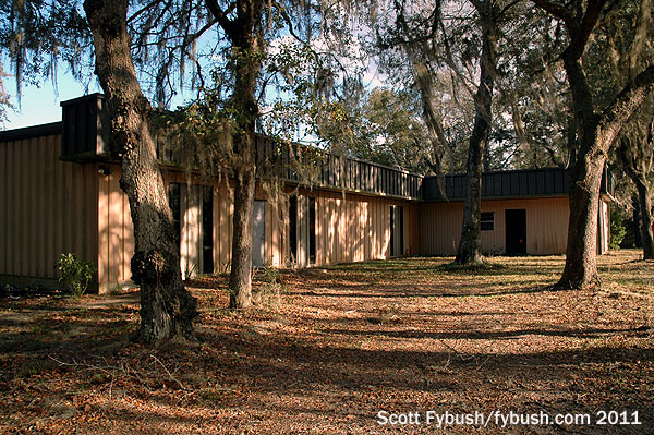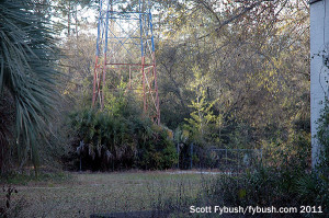 WGGG led the market into the 1970s, but was overtaken by FM and fell on hard times; by the late 1980s, it had abandoned this facility and now transmits from a short tower hidden deep in the trees in a suburban area on the west side of town, where we looked for it but couldn’t see it in the woods. In 2011, WGGG was simulcasting ESPN Radio with WMOP down in Ocala; after ESPN moved to WRUF, I’m not sure what WGGG is doing these days, if it’s on the air at all.