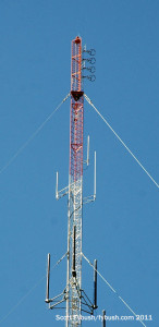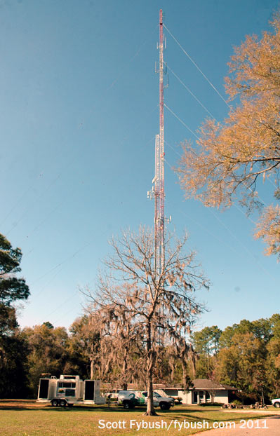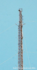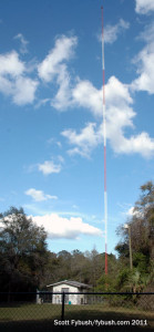 We couldn’t get to the tower of Gainesville’s final AM, WAJD (1390), back in a stand of trees behind a residential area east of town, so we finish up our look at Gainesville up on the north side of town, on NW 93rd Avenue just off NW 13th Street (US 441/FL 20). This location was the original WGFL (Channel 53) studio and analog transmitter site, and while WGFL has moved, the tower is now home to Asterisk’s WBXY (99.5 La Crosse).