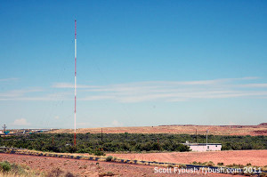 Today, “Broadcast Lane” sits behind a gate as the access road to the local sewage treatment facility, off the ramp that leads to I-40, and KDJI runs satellite talk, simulcast with KVWM (970) down in Show Low, 50 miles to the south. In 1993, KDJI added an FM sister station, country KZUA (92.1), which in turn added a Show Low sister FM, KZUZ (93.5), in 2011. Their Holbrook office sits on Navajo Boulevard, one of the two main drags through town, just a few blocks south of the interstate – and the KZUA tower, with its 10-bay antenna, sits just off I-40 east of town.
