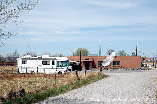 From Los Alamos, it’s a fairly long drive – more than 200 miles north and west – to our Saturday-night stop in Durango, Colorado, and along that 200-mile trip, there were just two more stations to see. In Espanola, 25 miles northeast of Los Alamos, the local AM station is KDCE, which signed on in 1963 as a daytimer on 970. In the late 1980s, KDCE relocated to its present spot at 950 on the dial, allowing it to boost day power to 4200 watts and add 80 watts at night, which is enough to cover the small town from its site on the east side of the Rio Grande, just off Riverside Drive.