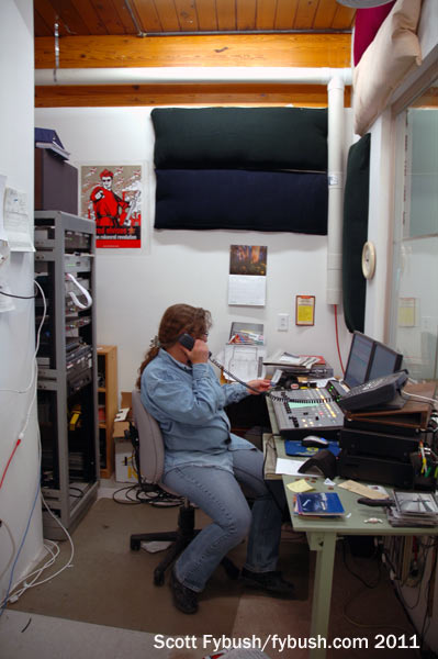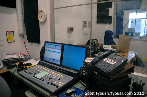 It’s Gillian Sutton behind the board when we stop by the new KRSN studios in a strip mall on Arkansas Street around lunchtime, and we get a quick tour of the station’s simple two-room studio facility while she’s busy running a remote broadcast from a local car dealership. At the time, KRSN was completing its move to a new tower site in White Rock after several years of STA operation from a temporary antenna; we’ll have to go back at some point to see the new transmitter facility.