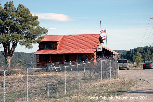 We did drive up to Los Alamos, more than 7,000 feet above sea level, on Saturday morning, not only to add tiny Los Alamos County to our log for the trip but also to see if anyone was around at the little local AM station in town – and indeed there was!