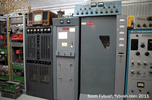 The mighty 50E is just part of an enormous collection here that includes a whole bunch of transmitters retired from service in the Four Corners region and beyond. Next to the 50E is an older RCA 5D that was KOB’s transmitter before the RCA entered service (that one, I think, would have moved up from Las Cruces to Albuquerque). Then there’s KOB-TV (Channel 4)’s first transmitter…not to mention old Gates transmitters from several AM and TV stations in the Four Corners.