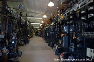 These pictures show only a small piece of the whole collection: there are TV cameras, VTRs, production consoles – and then a huge amount of non-broadcast material. You want traffic lights? Tommy’s got those. Power meters of all varieties? Yup.
