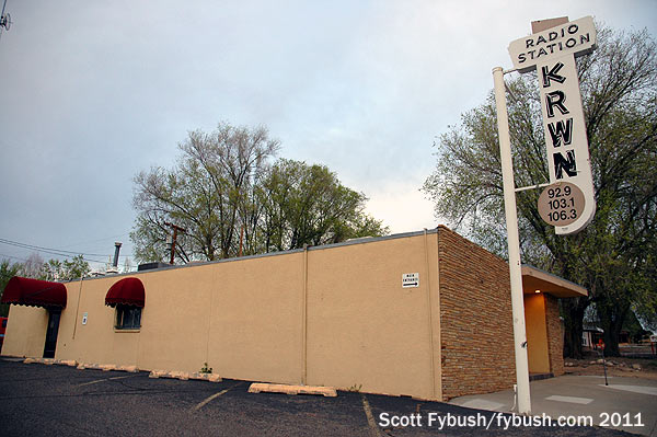 AGM’s cluster includes talker KENN (1390), rocker KRWN (92.9, as seen on the sign), country “Kiss” KISZ (97.9 Cortez CO), hot AC KRTZ (98.7 Cortez CO), and a station that signed on after our 2011 visit, KPRT (107.9 Kirtland).