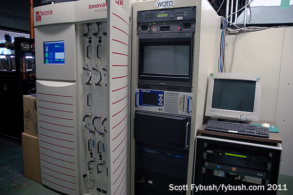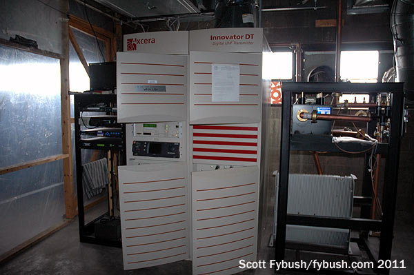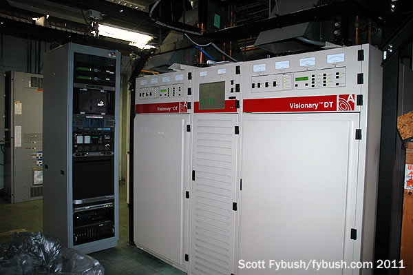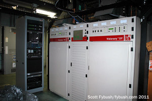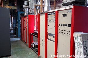WQED-TV operated transitionally on channel 38 at the start of the digital era, but returned to VHF with the end of analog in 2009. Its current digital transmitter (or at least the transmitter it was using when we visited in 2011) is a compact Axcera unit that sits just inside the doorway of the big transmitter room, generating the 4680 watts of output power needed for WQED’s 25 kW ERP digital signal.