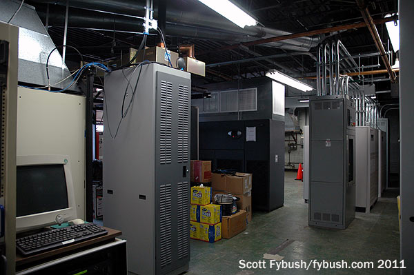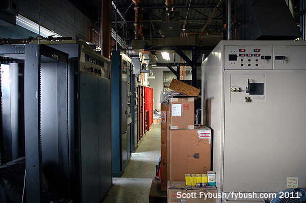 Downstairs from the main transmitter room is where we find HVAC and electrical units, as well as two-way radio services and a bunch of low-power TV stations in little partitioned rooms toward the back. The stations here include the flagship of the “Bruno-Goodworth Network,” independent WBGN-CA, formerly on analog 59 and now on RF 16, WQEX’s longtime home. There’s now also a fill-in digital translator for ABC affiliate WTAE (Channel 4), operating on channel 22 to reach parts of town that have trouble getting the main WTAE signal from a site far to the southeast. And what of that interim WQEX channel 26 transmitter? It has moved downstairs as WPDN-LD on channel 24, a Daystar religious outlet.