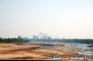 But as we’re saying a premature “farewell” to Tulsa, looping south of downtown headed westward on I-44 and promising to come back sometime in cooler weather, we notice a three-tower AM site just north of the highway and grab a quick picture from the road. This is KYAL (1550 Sapulpa), part of Stephens Media’s statewide sports-talk network, and it runs 2500 watts by day and 40 watts at night from this site.