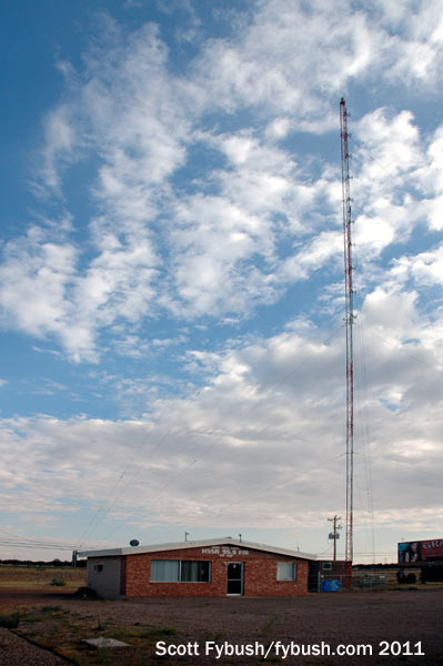 This is an area of good ground conductivity, so big Amarillo AM signals such as KGNC (710) and KIXZ (940) are audible more than 100 miles away. With a little more advance planning and just a bit more time to spare, we’d probably have pulled off I-40 on the east side of Amarillo and headed just a couple of miles south to see the four-tower KIXZ array; KGNC’s five-tower array far to the northeast of Amarillo would have been a much bigger project and will have to await some future visit to the area.