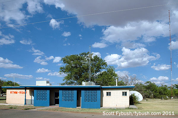 Radio in Tucumcari, such as it is, comes from an AM/FM pair located on a side street just a block off old Route 66. KTNM (1400) and KQAY (92.7) were all automated on that July Sunday two years ago when we stopped by, but we’re told that new owners have brought back some local programming – and the legal IDs that were missing at the top of the hour, too! KTNM dates back to 1941, while its FM sister came along in 1968 as KTNM-FM, just as the interstate was getting ready to bypass historic Route 66. (Its current callsign comes from Quay County, of which Tucumcari is the seat.)