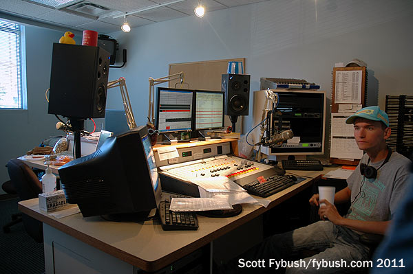 Everything else in this big cluster, with studios arrayed all along the western wall, came from Clear Channel in 2004: talk WGBF (1280 Evansville), the market’s oldest station; rock WGBF-FM (103.1 Henderson KY); classic hits WJLT (105.3 Evansville) and top-40 WDKS (106.1 Newburgh).