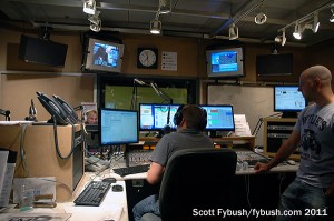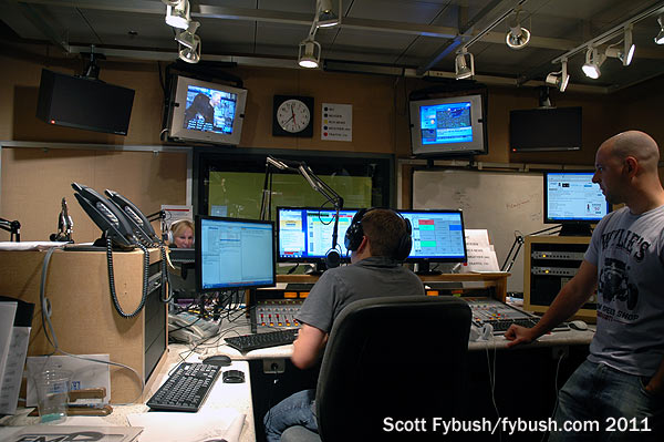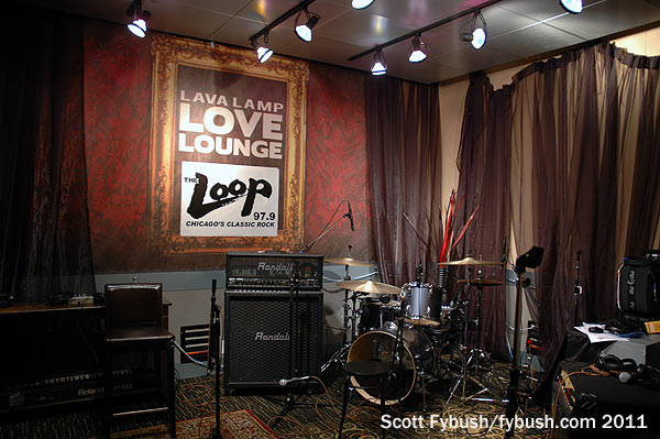 And just a few months before our visit, Emmis sold WKQX and WLUP (along with WRXP in New York) to Randy Michaels’ Merlin Media, which was just settling in when we stopped by in August. Merlin mostly left WLUP’s rock format alone, including the “Lava Lamp Love Lounge” live performance studio that anchors one end of the studio hallway that runs parallel to the Merch Mart’s main corridor. WLUP’s air studio is also along that line of studios visible from the main corridor – and next to it is what used to be the “Q101” modern rock studio.