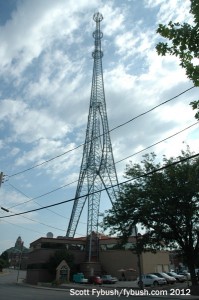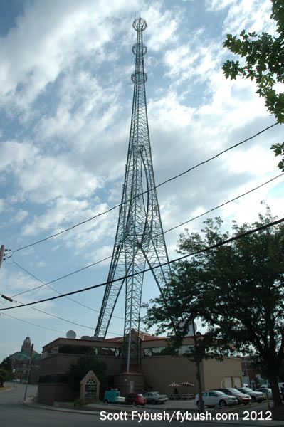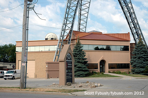 Connoisseur’s studios are in a most remarkable location in downtown Bloomington, the “Tower Center” that sits directly below the 42o-foot TeleCourier tower, a rare example of the “Star Tower” pre-stressed tower that we’ve seen in taller form in places such as Cincinnati and Washington. There’s just one broadcast outlet on this tower, translator W261BK (100.1, relaying religious WBNH from Pekin/Peoria); otherwise it’s mostly used by TeleCourier for its paging and two-way radio services, as well as for cellular – but it sure is pretty to look at, isn’t it?