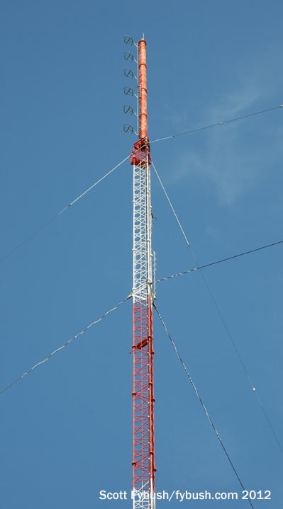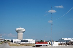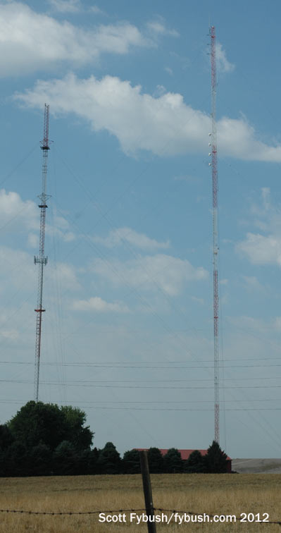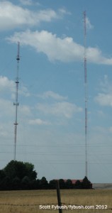 We conclude our look at Bloomington way out on the west side of town, in the farmland west of I-55/74 on our way out to our next stops in Peoria. Connoisseur’s WIHN operates from a tower on Nord Road just west of the freeway; a mile or so west on Washington Road we come to the westernmost tower in town, which carries Illinois State-based public radio outlet WGLT (89.1 Normal). The outgrowth of a student carrier-current station that started in 1966, WGLT’s calls stand for “Gladly Learn and Teach,” a variation on the university’s motto.