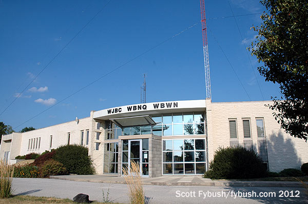 WJBC’s studio and newsroom now sits proudly right at the center of this sprawling facility, between the newer sales and business offices to the south and the old lobby and programming offices to the north. (You can just see the original 1970 lobby entrance at the far left of the studio picture near the top of the page.)