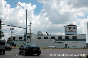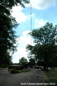 Wind through a residential area as you head southwest and you’ll come out in North Pekin along Edgewater Drive, where the tower of daytimer WVEL (1140) sits next to what I think was once its studio.