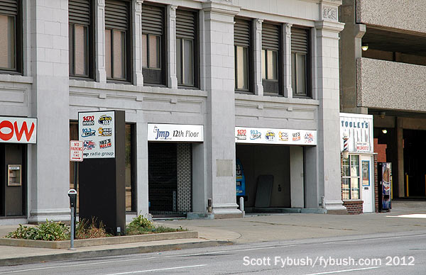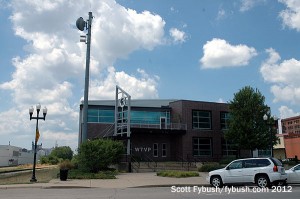 Right in the heart of downtown at 212 SW Jefferson (also known as 331 Fulton Street, the address around the corner), we find the old Majestic Theater, which was WMBD-TV’s original home and which still houses its former radio sister stations. Peoria’s first radio station signed on back in 1927, taking its callsign from the local brag about the “World’s Most Beautiful Drive,” a stretch of Grandview Drive overlooking the river. Today, WMBD (1470) is a talker owned by L&L Broadcasting, and its studios upstairs in the old theater building also house longtime sister station WPBD (93.3, “the Drive”) and more recent additions – oldies WIRL (1290), AC WSWT (106.9), classic rock WDQX (102.3 Morton) and country WXCL (104.9 Pekin).